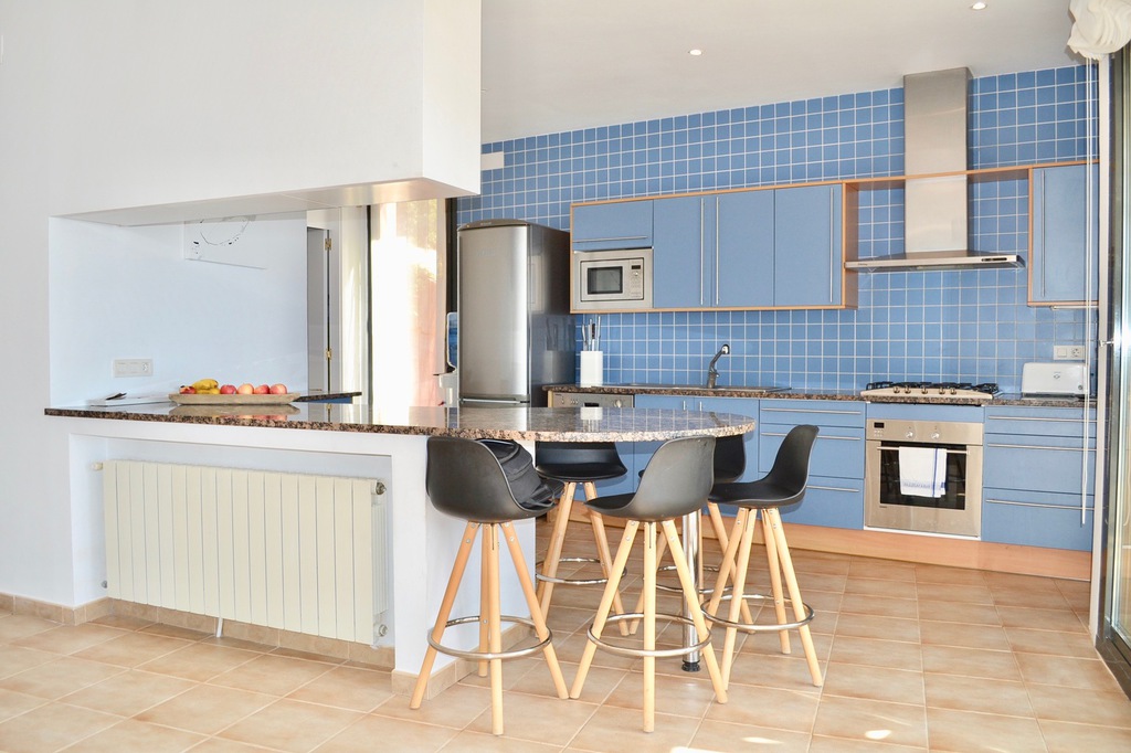 This Villa has another Kitchen on this level, so preparing food for around the pool is very easy. There is a large private pool, sunbeds,chairs , plus a gas BBQ.