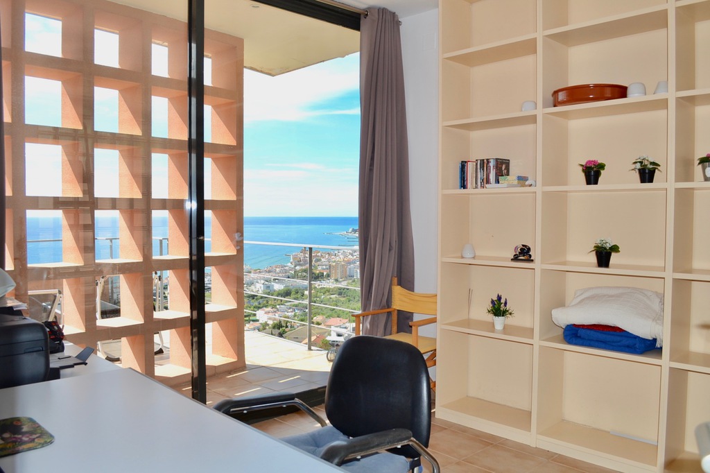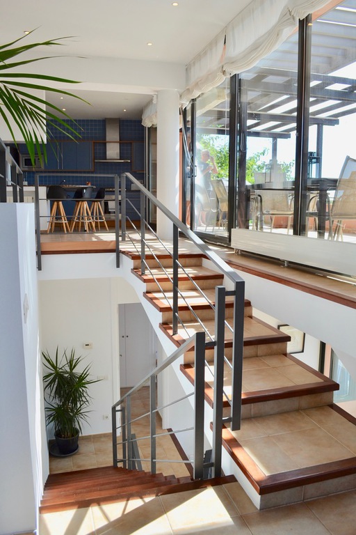 On this level there is an open plan kitchen fully equipped for all your needs, a large dining area and the lounge área and large outside terrace with again stunning views.