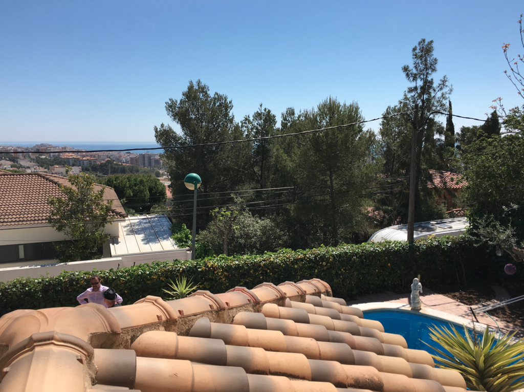 It is situated in the Vallpineda area of Sitges. It is located on a very quiet street but has amazing views over Sitges.