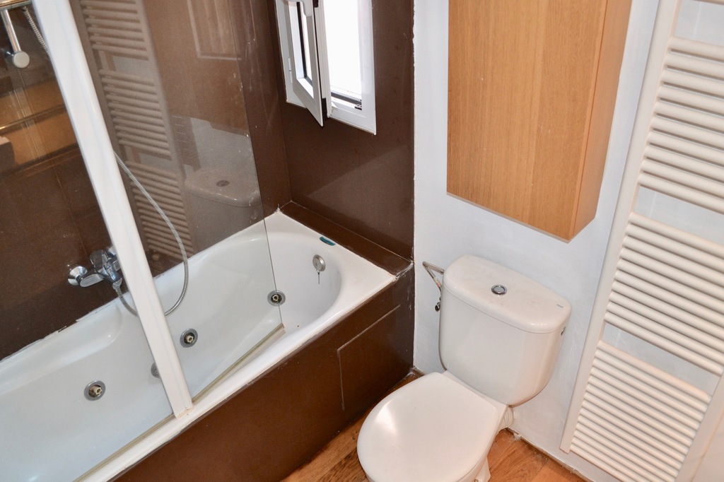 This former 3 bedroom apartment is divided over two floors, with on the ground floor the living area, a bathroom and kitchen, there is direct access to the private garden and patio area on the rear of the property. On the second floor there are two large, double bedrooms with build in wardrobes and a large full bathroom. The main bedroom also offers direct access to a large balcony with some sea views.