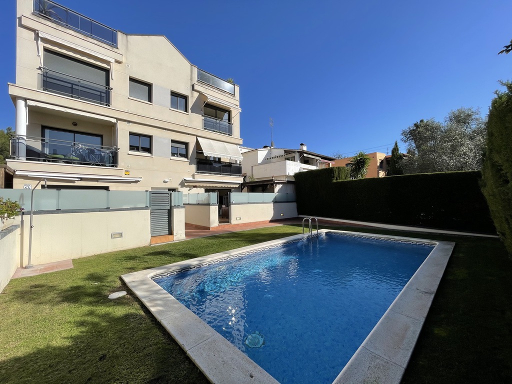 Son unos bajos , esquinero con un jardín ,terraza privado de 90 metros , acceso directo desde la terraza privada a la piscina
