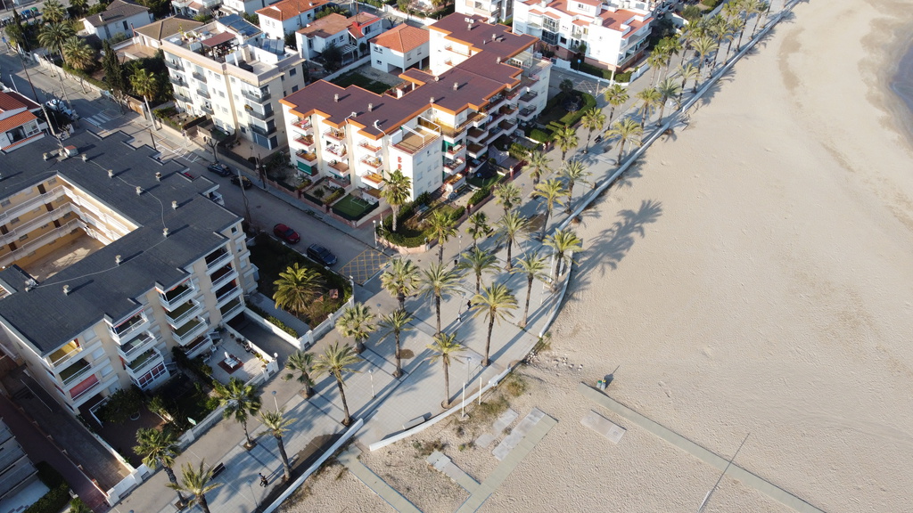 La finca ofrece acceso directo al paseo y la playa y dispone de duchas para sacar la sal y arena antes de entrar al piso.