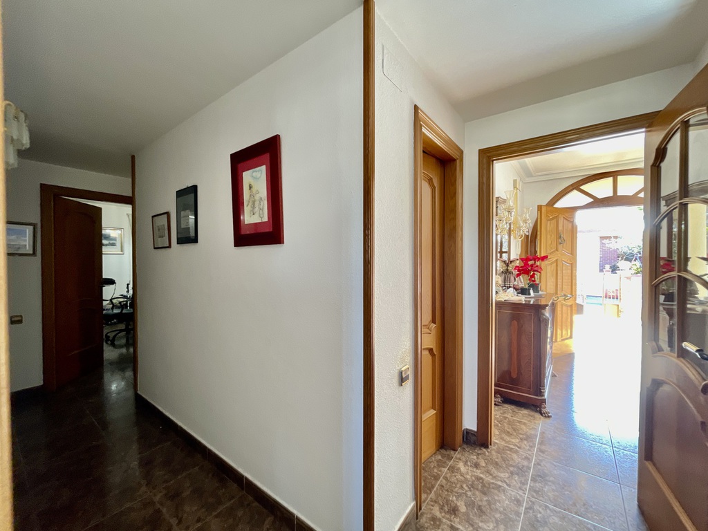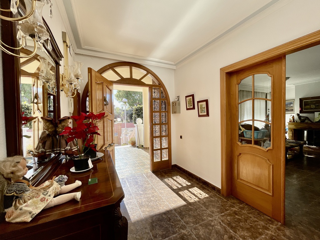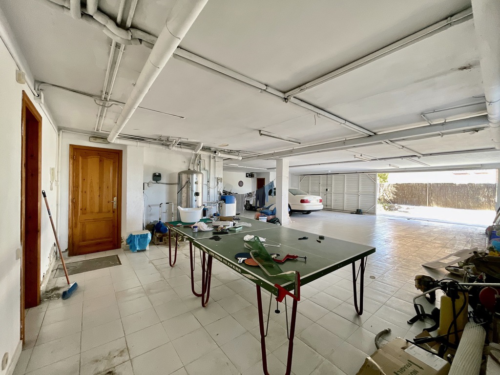 En unas de las zonas más destacadas en Vilanova i la Geltrú, encontramos este espacioso chalet de 433m2 construidos. La vivienda está distribuida en una sola planta, ofreciendo 5 habitaciones, 4 baños, espacioso salón con fuego a tierra y gran cocina con puertas de roble macizo. Bajando las escalares encontramos un acceso directo al garaje, varios trasteros, lavadero y una cocina y comedor secundario (con BBQ) y acceso a la zona de la piscina y jardín. Bajando unas escaleras más y estamos en el sótano/zona de máquinas.