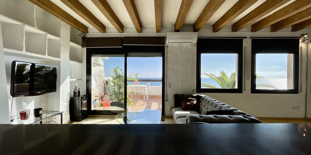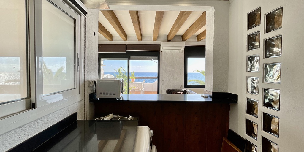 Lo mejor de este apartamento, sin duda, es su ubicación. Desde la gran ventana en la sala de estar, las vistas son directas al mar, y además, ofrece acceso directo a la terraza para relajarte y escapar del estrés diario mientras escuchas las olas romper a pocos metros de distancia.