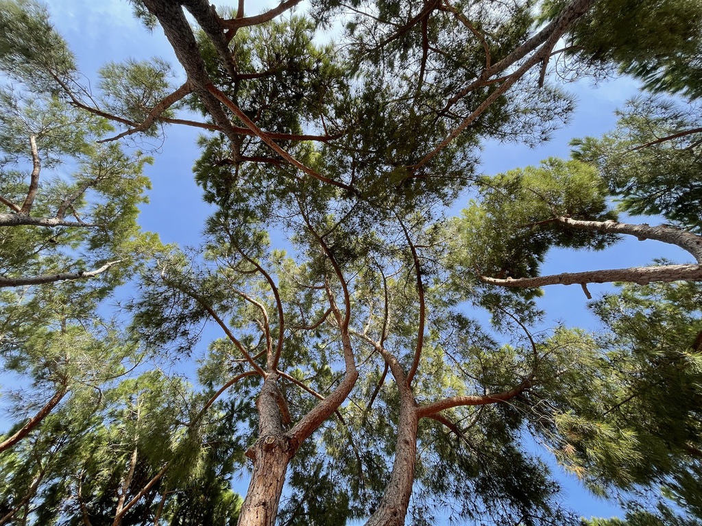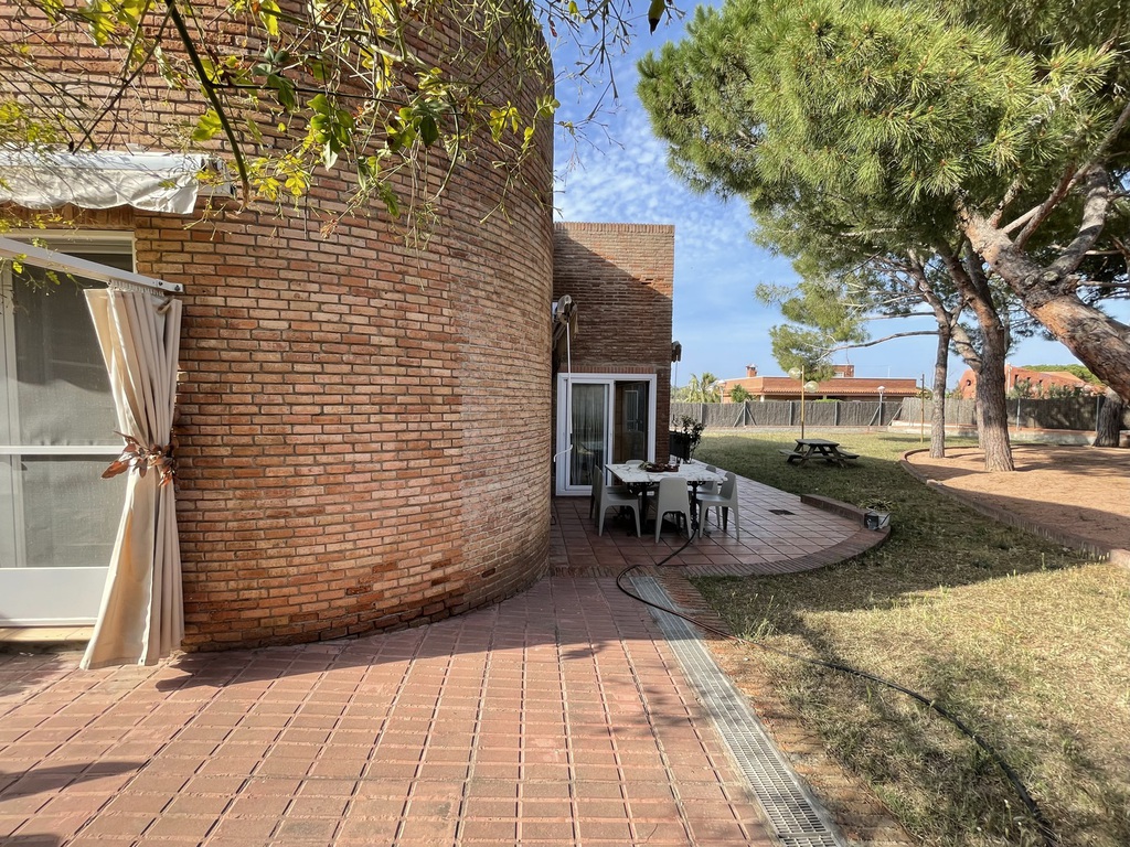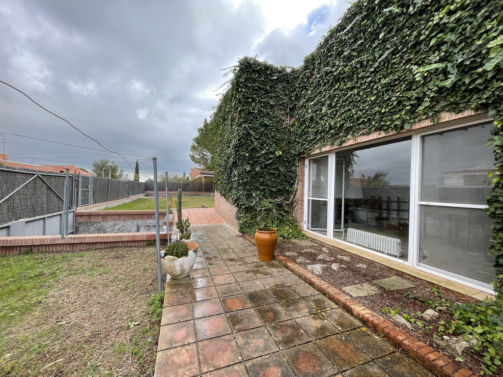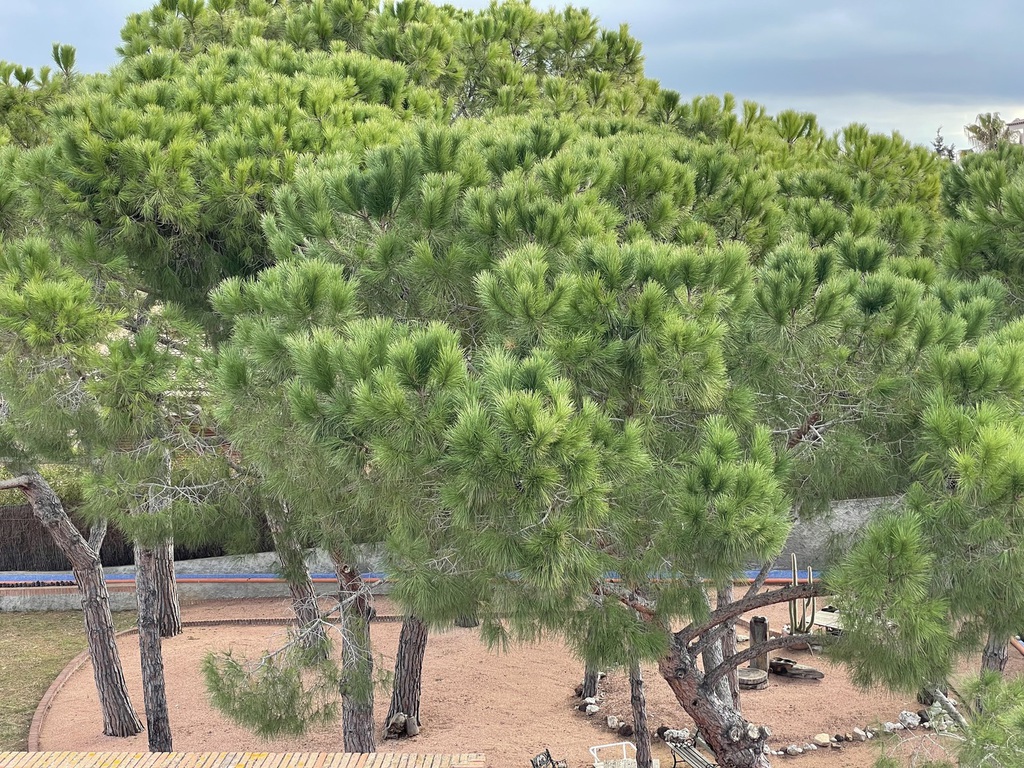 Una casa muy cómoda, construida en una sola planta con gran jardín de pinos sin mucho desnivel.