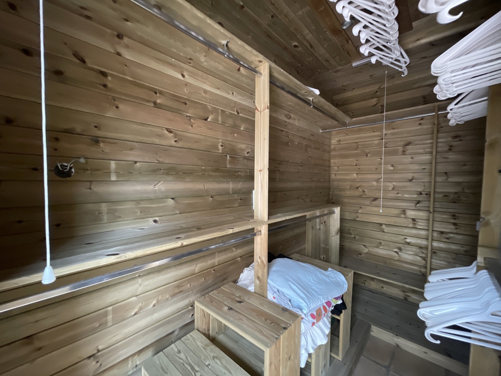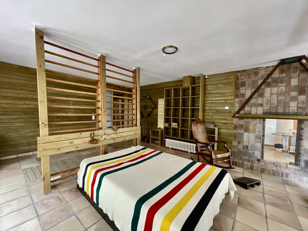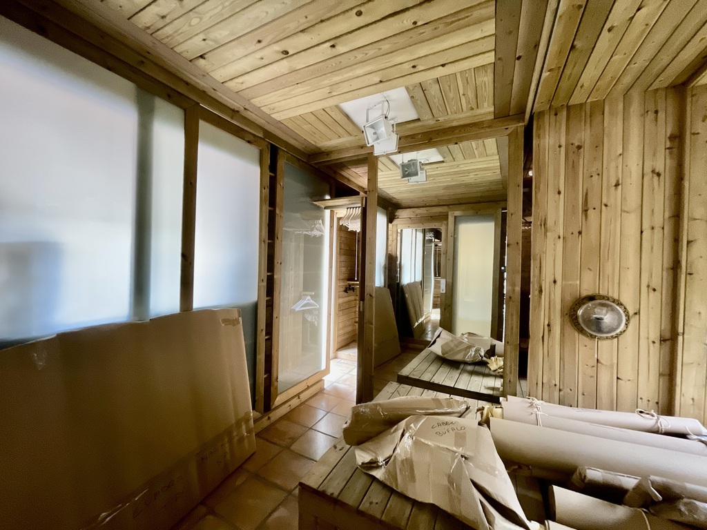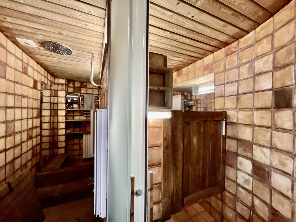 Una casa muy cómoda, construida en una sola planta con gran jardín de pinos sin mucho desnivel.