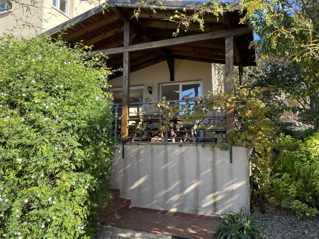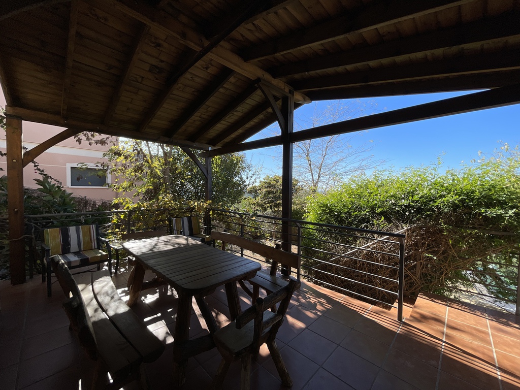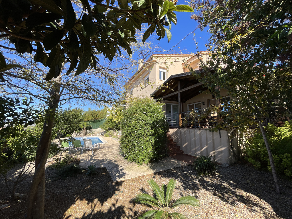 En la planta baja encontramos un salón grande de unos 40m2 con acceso directo a una gran terraza cubierta, zona BBQ y al jardín y piscina. En esta planta hay además 1 habitación doble, 1 baño con ducha, y la cocina, también con acceso a la terraza y jardín.