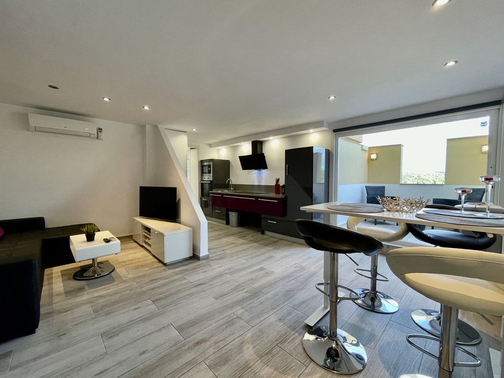 Está todo equipado, espacios diáfanos ,los electrodomésticos están integrados en los muebles de la cocina ( nevera, lavavajillas, microondas, lavadora ,cafetera eléctrica, TV, menaje de cocina